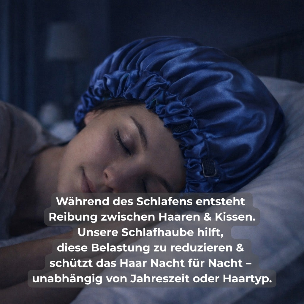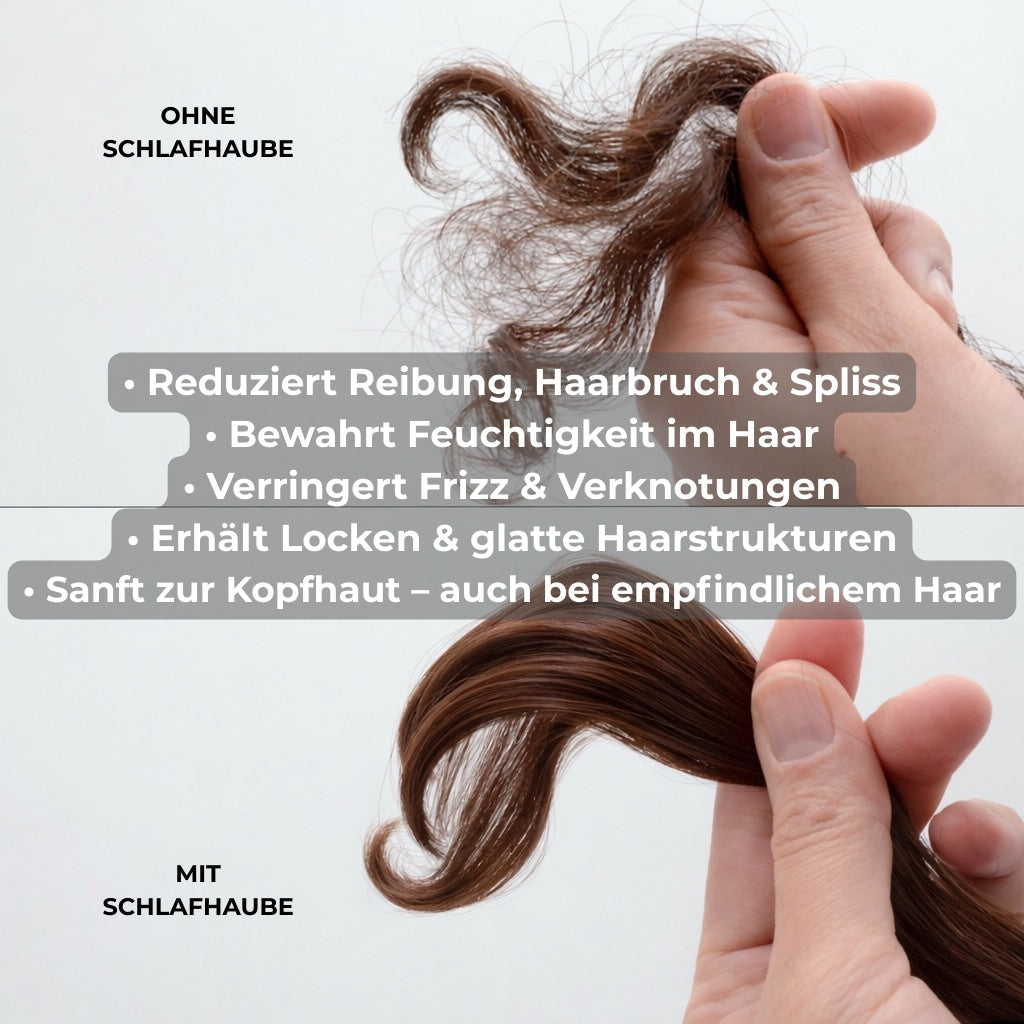 Unsere Schlafhaube sitzt sicher, ohne dein Haar einzuengen oder Druckstellen zu hinterlassen. Sie ist so bequem, dass Du vergessen wirst, dass du sie trägst – während sie dein Haar optimal schützt.